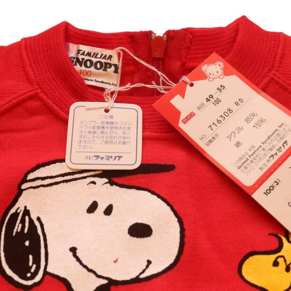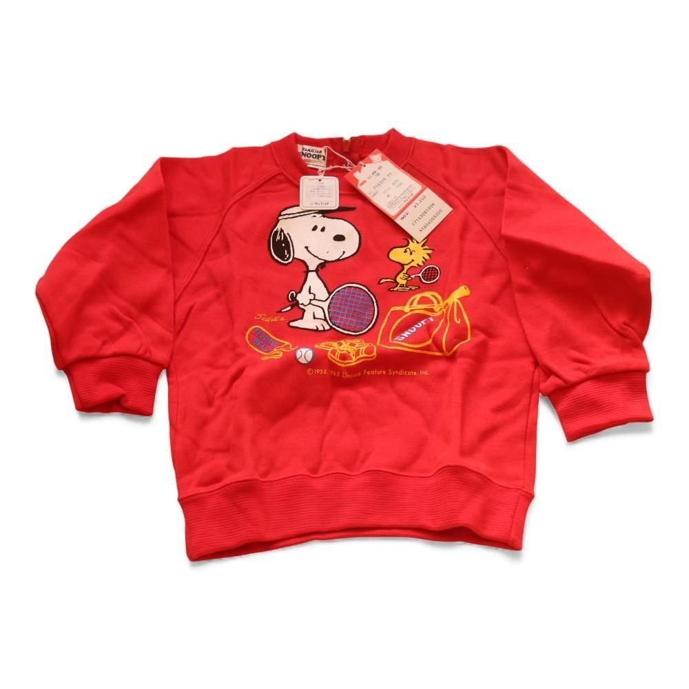 長期保管されていたデッドストック品です。日本の老舗子ども服ブランド「ファミリア」とスヌーピーのコラボレーションアイテム。 テニスルックのスヌーピーとウッドストックがプリントされた人気の高いデザイン。